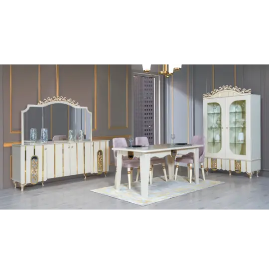 Komplektə daxildir : Kamod: 1870 x 1700 x 465 mm, Vitrin: 2070 x 1230 x 480 mm, Tv altı: 1780 x 1240 x 440 mm, Masa: 2050 x 900 x 790 mm